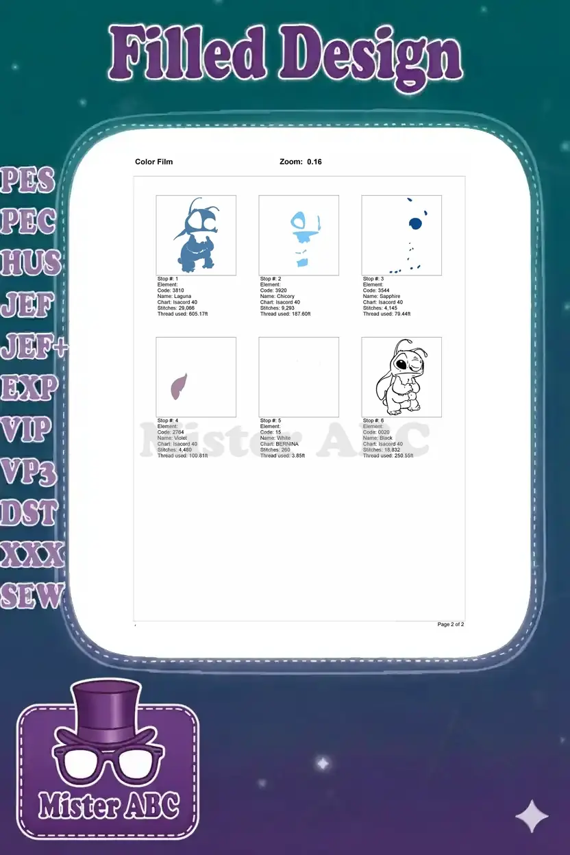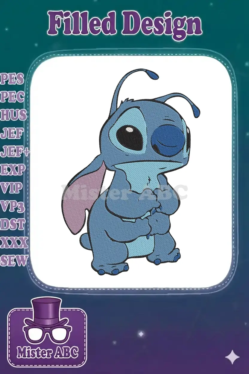 Shy Stitch blue alien character embroidery designs
