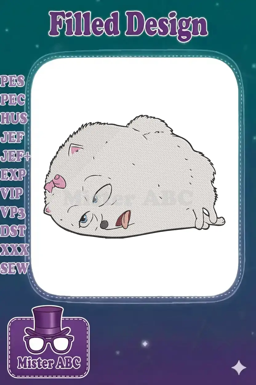 Silly fluffy white cat with pink bow tongue out embroidery designs