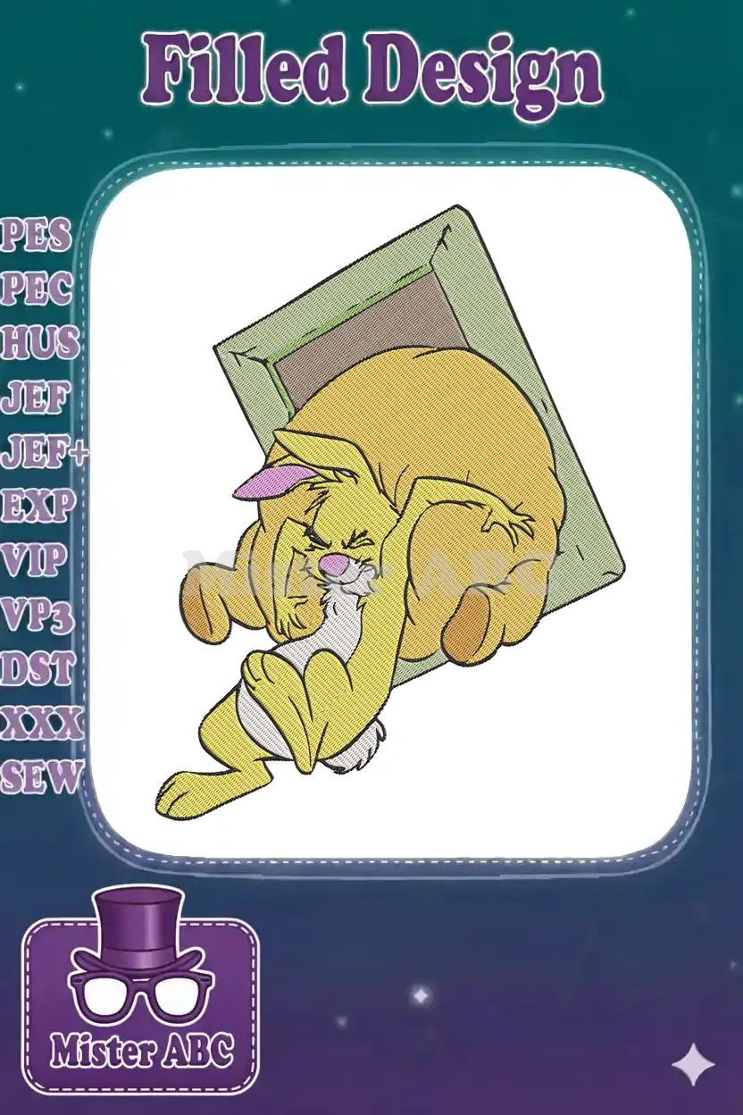 Silly Yellow Rabbit Squished in Frame Whimsical Embroidery Designs