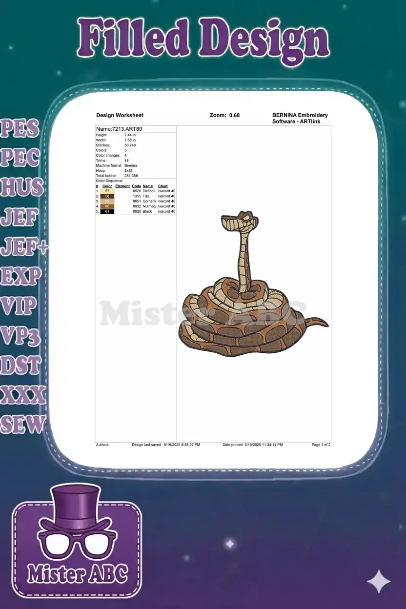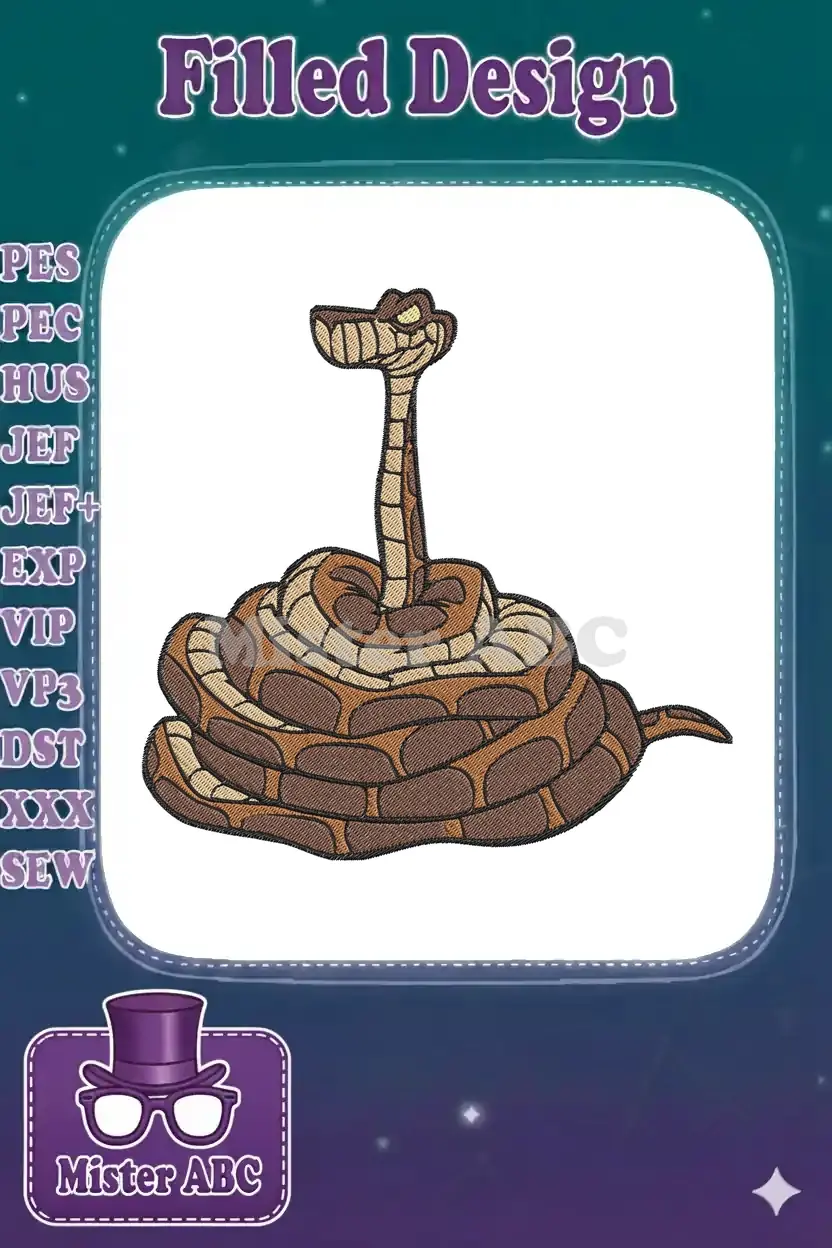 Sly Grinning Cartoon Snake Coiled Brown Tan Embroidery Designs