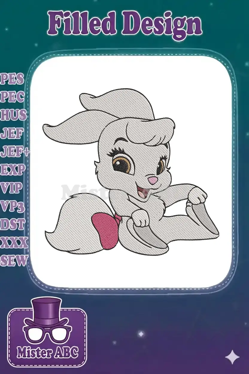 Smiling Cartoon Baby Bunny with Pink Bow Embroidery Designs