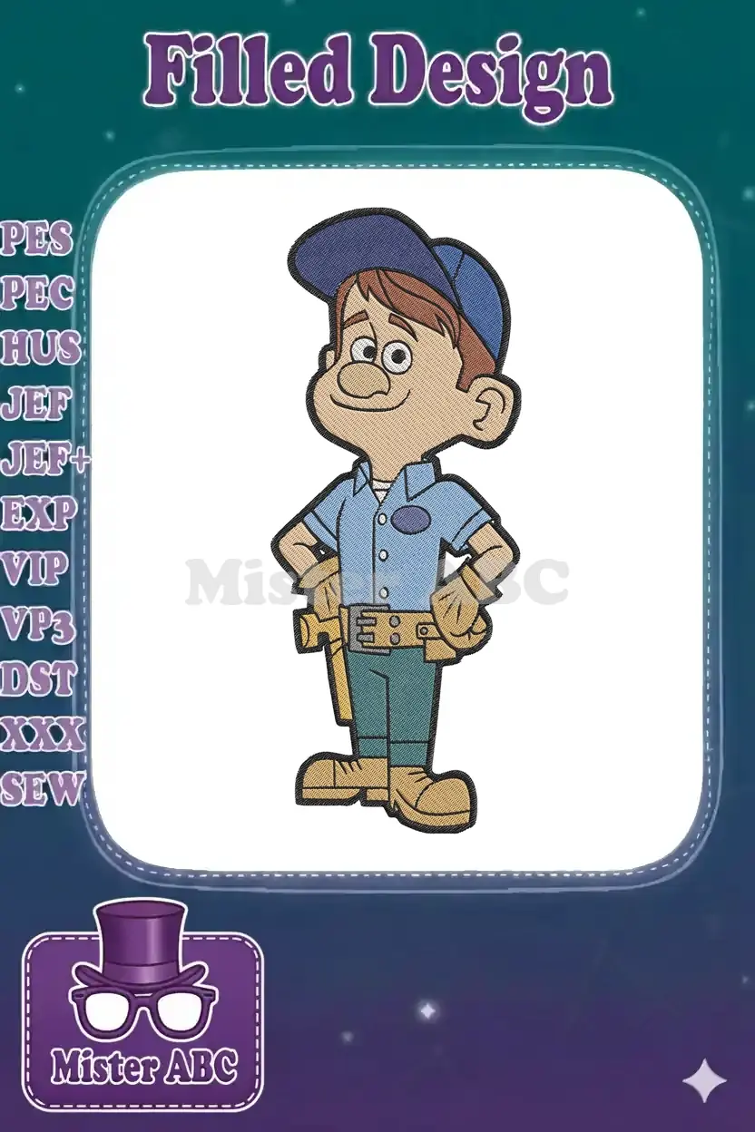 Smiling Fix-It Felix Jr. handyman character cartoon embroidery designs