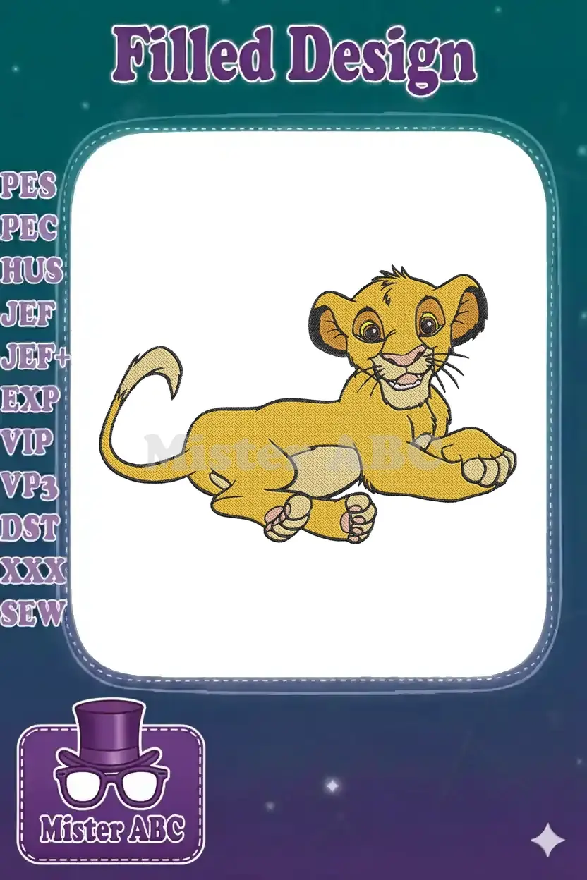 Smiling golden lion cub Simba cartoon embroidery designs