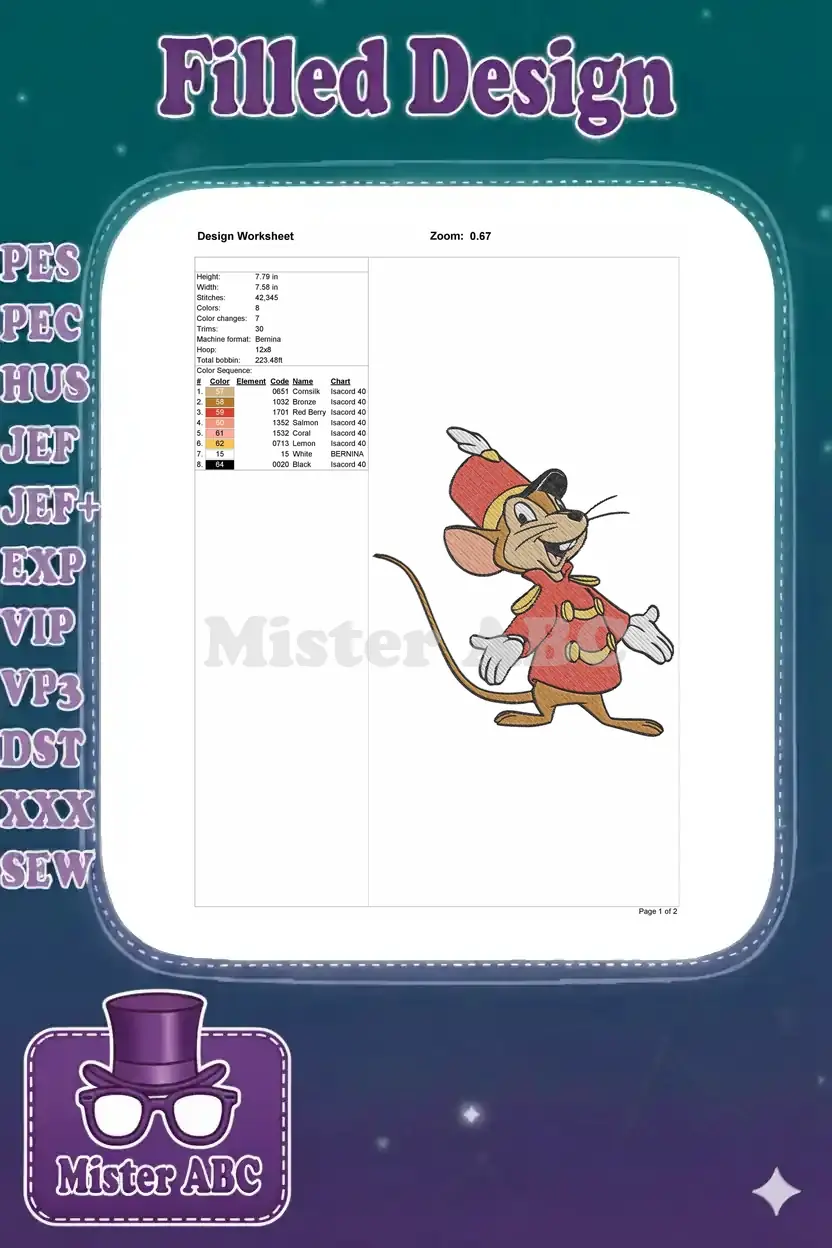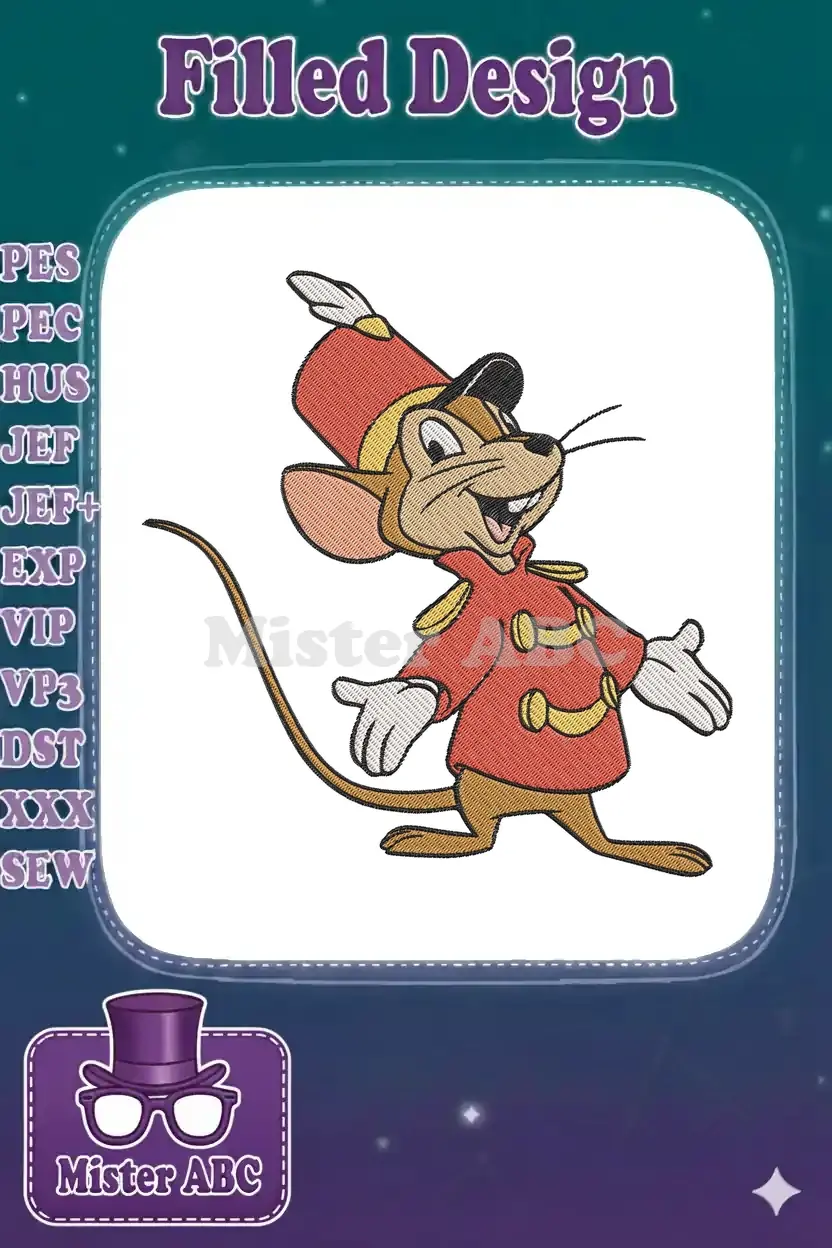 Smiling Timothy Mouse in red bandleader uniform embroidery designs