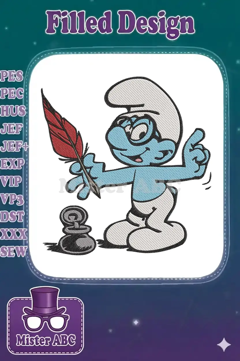 Smurf writer with quill pen and inkwell embroidery designs