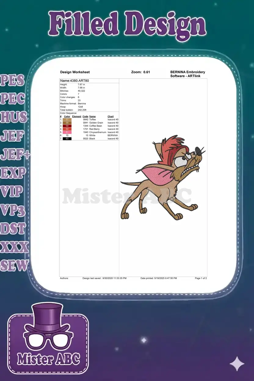 Capture the mischievous spirit of Banzai, the iconic hyena, with this vibrant embroidery design. Perfect for fans of animated classics!