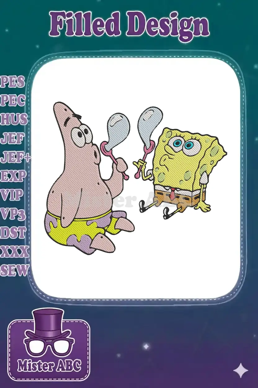 Spongebob and Patrick blowing bubbles embroidery designs