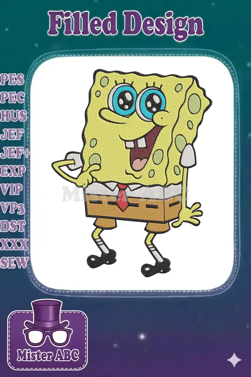 Spongebob Squarepants Happy Smiling Cartoon Character Embroidery Designs
