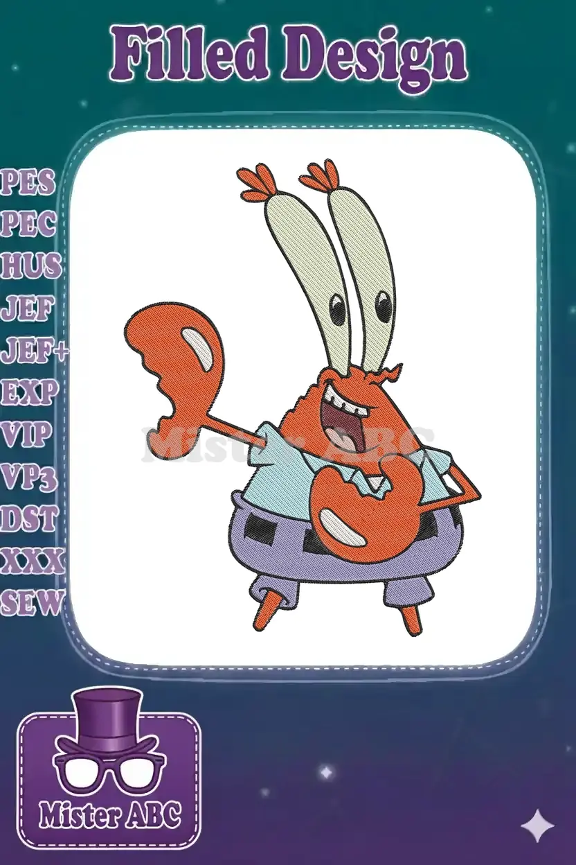 SpongeBob SquarePants Mr Krabs smiling cartoon embroidery designs
