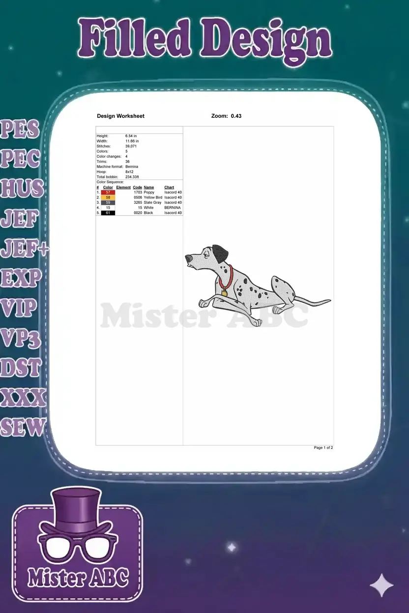 Spotted Dalmatian Dog Lying Down with Red Collar Embroidery Designs