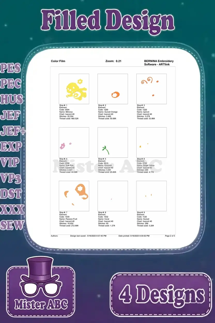 | Stitches | Colors | Thread Changes |