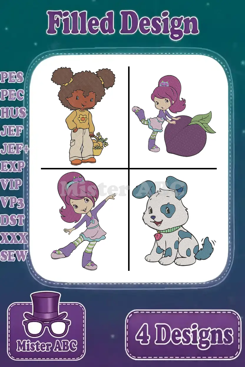 Strawberry Shortcake And Friends - Orange Blossom And Plum Puddin Skater With Pupcake Dog - Berry Active Pals - Filled Embroidery Design - Instant Download Strawberry Shortcake And Friends – Orange Blossom And Plum Puddin Skater With Pupcake Dog – Berry Active Pals – Filled Embroidery Design – Instant Download