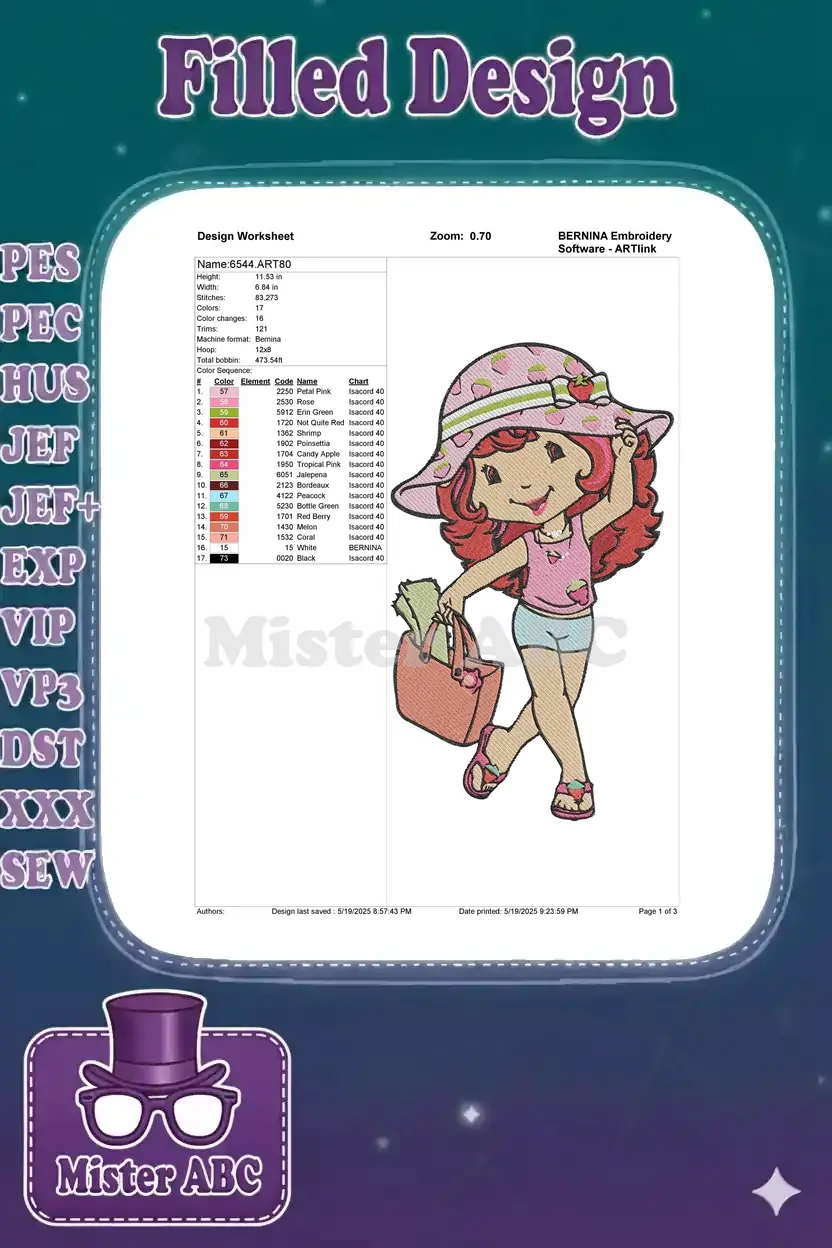 Strawberry Shortcake Summer Beach Outfit Embroidery Designs