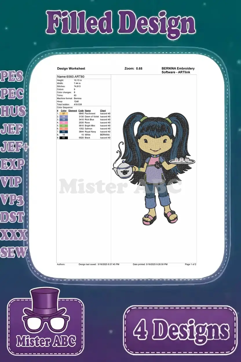 Delightful bundle of four filled embroidery designs featuring beloved characters and whimsical scenes. Perfect for adding charm to any project!