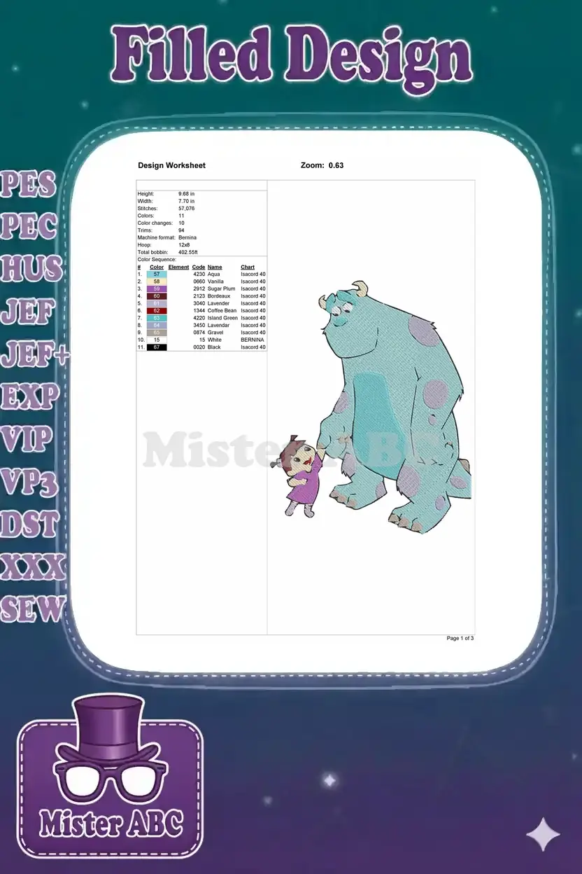 Sully and Boo Monsters Inc friendship embroidery designs
