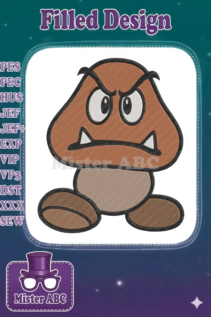 Unleash your inner gamer with this iconic Goomba embroidery design! Perfect for fans of classic video games, adding a fun, nostalgic touch.