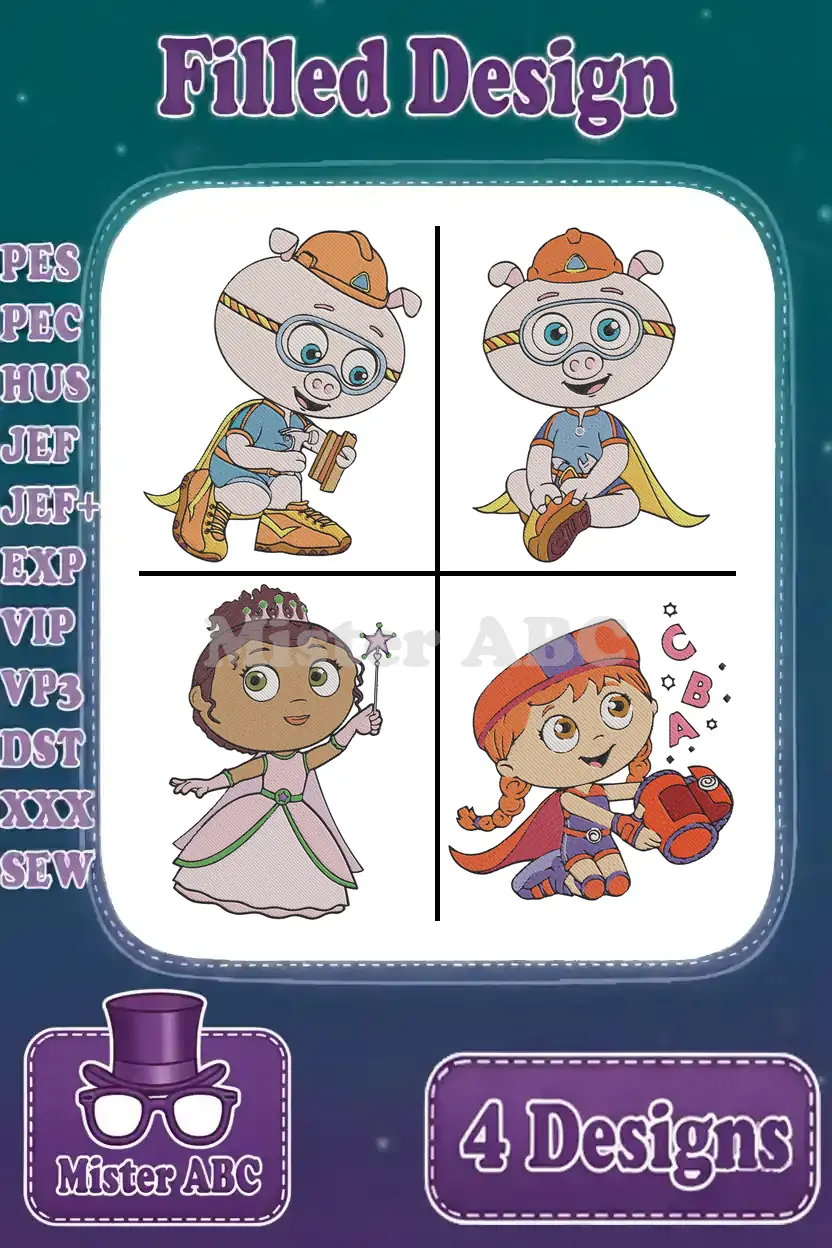 Bring Super Why! adventures to life with this vibrant 4-design embroidery bundle. Perfect for young fans!