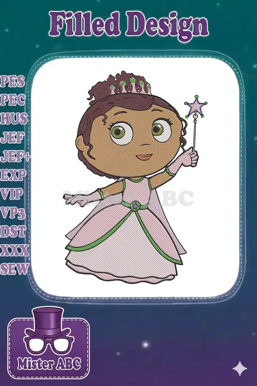 Super Why’s Princess Pea fairytale character star wand embroidery designs