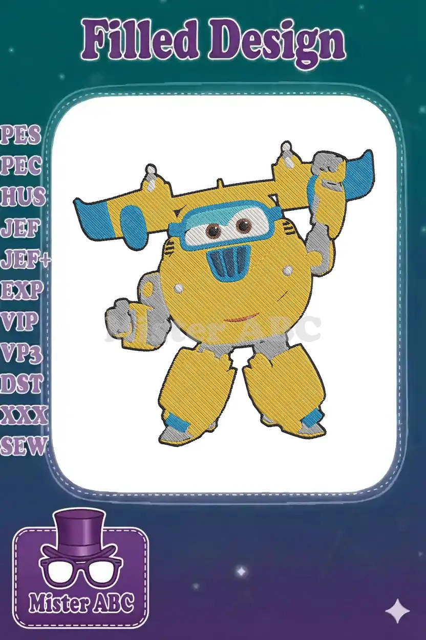 Super Wings Jett Yellow Airplane Robot Character Embroidery Designs
