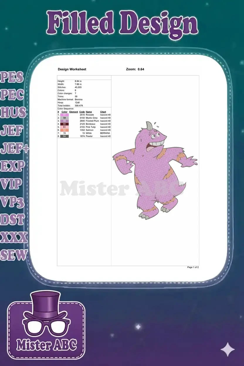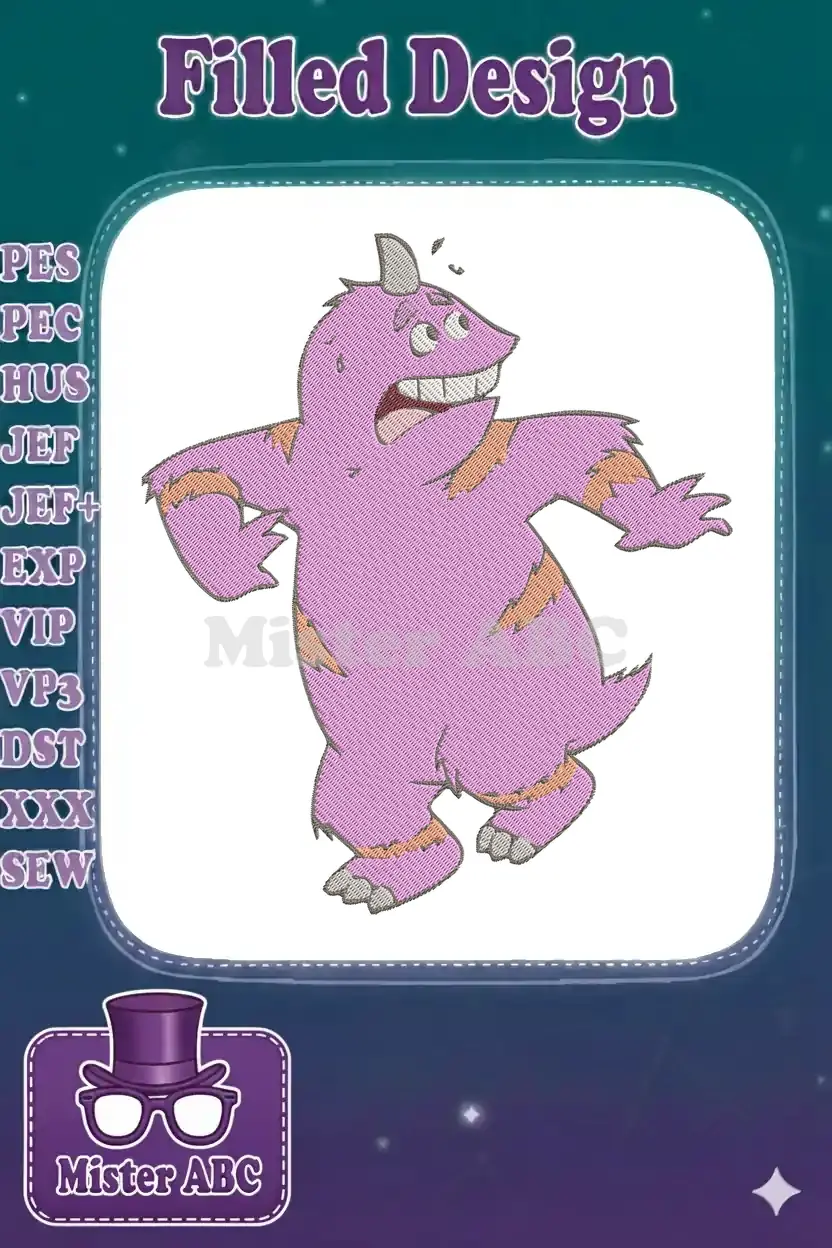 Surprised pink horned monster character embroidery designs