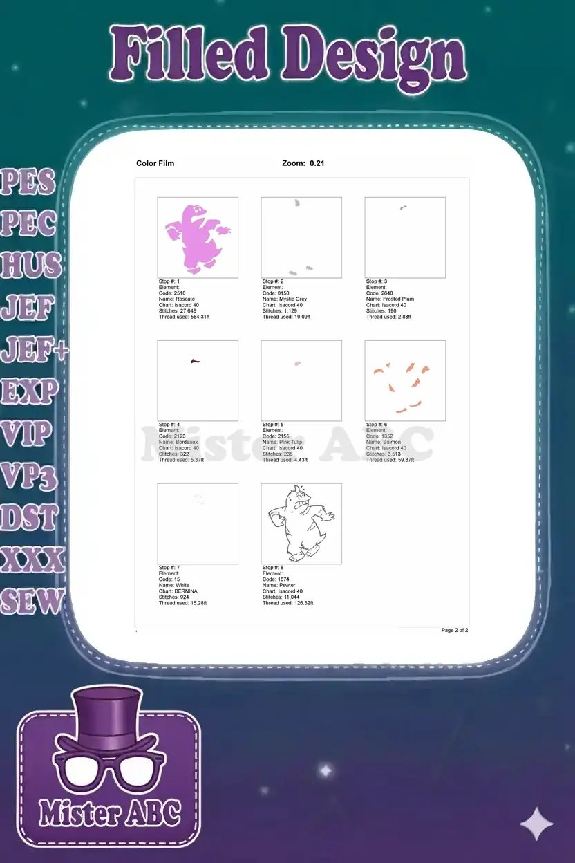 | Stitches | Colors | Thread Changes |