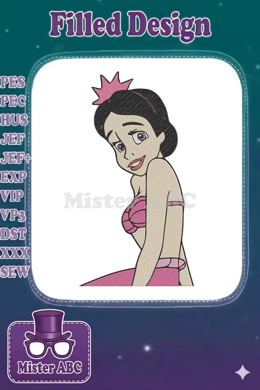 Sweet animated Princess Melody with pink crown embroidery designs