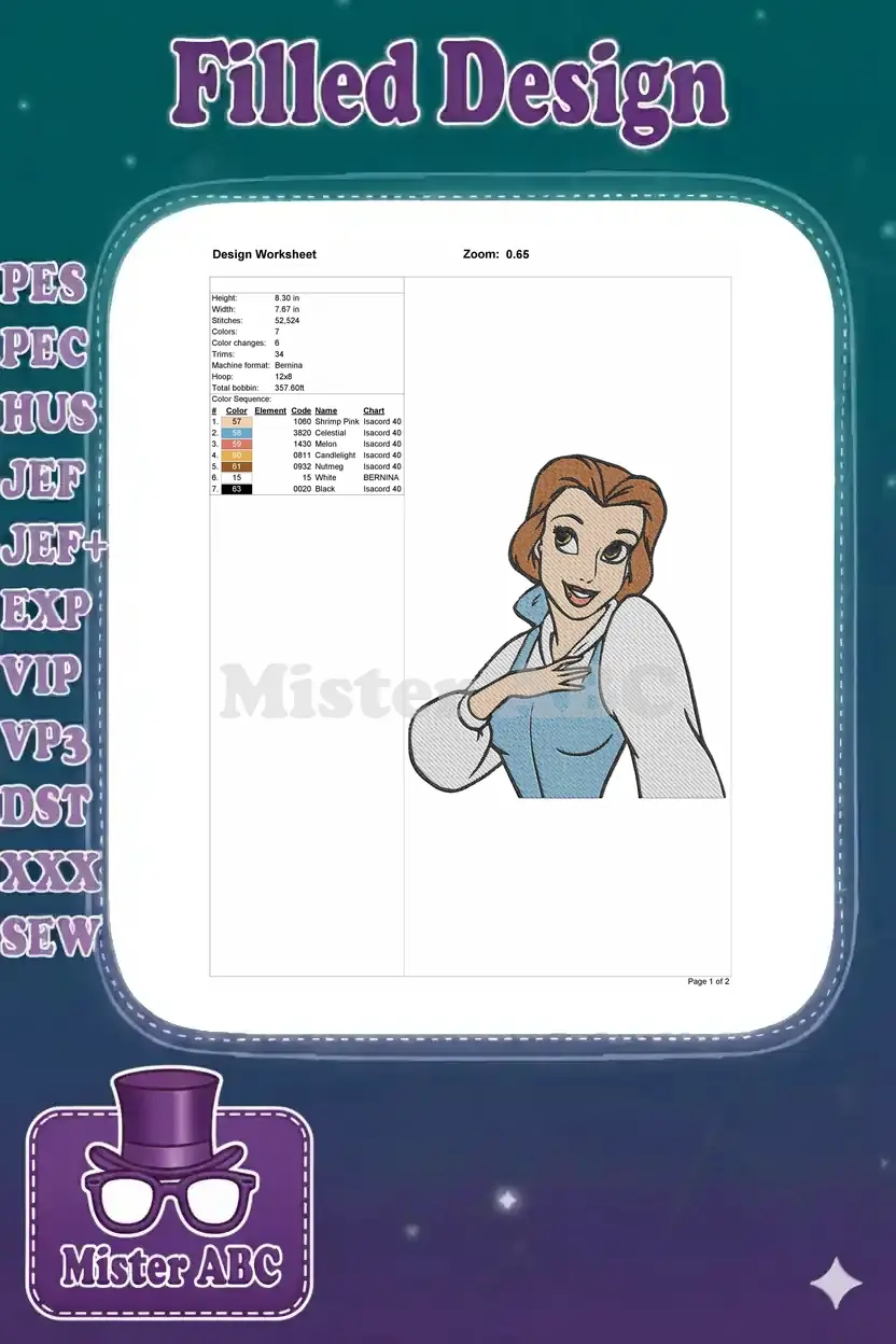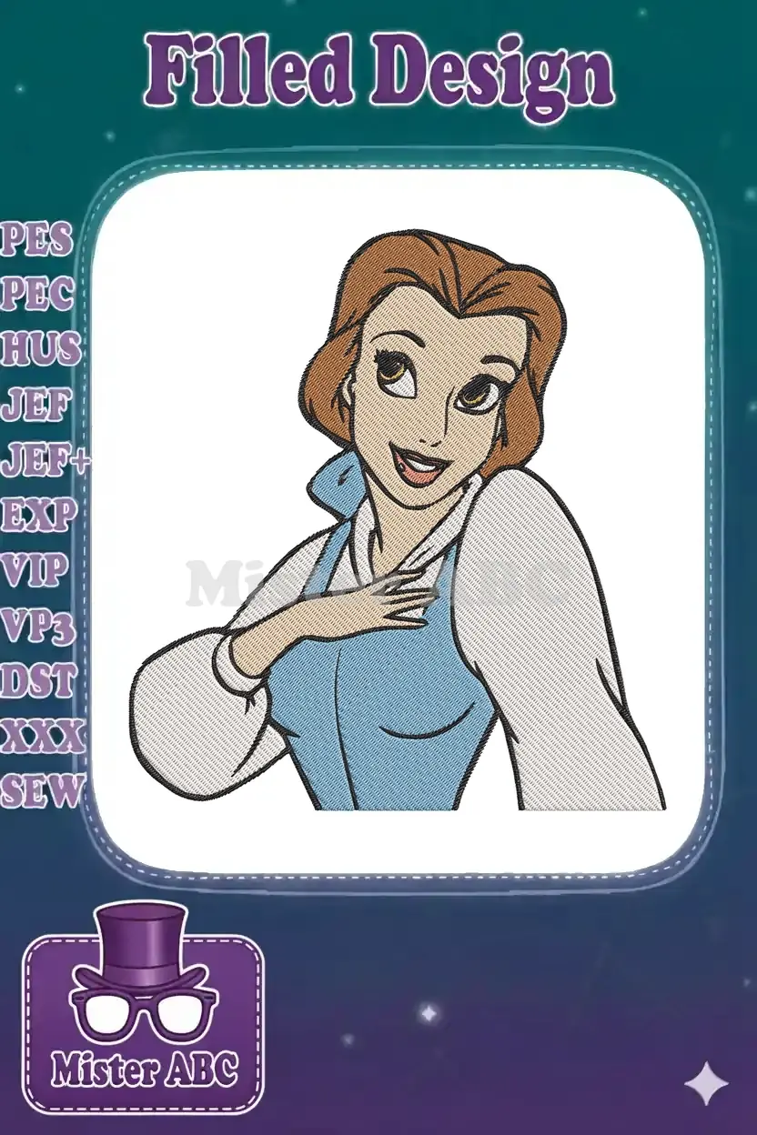 Sweet Belle Disney Princess smiling blue village dress embroidery designs