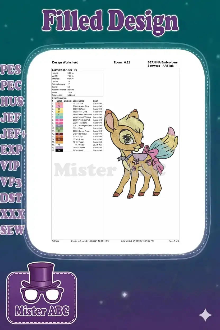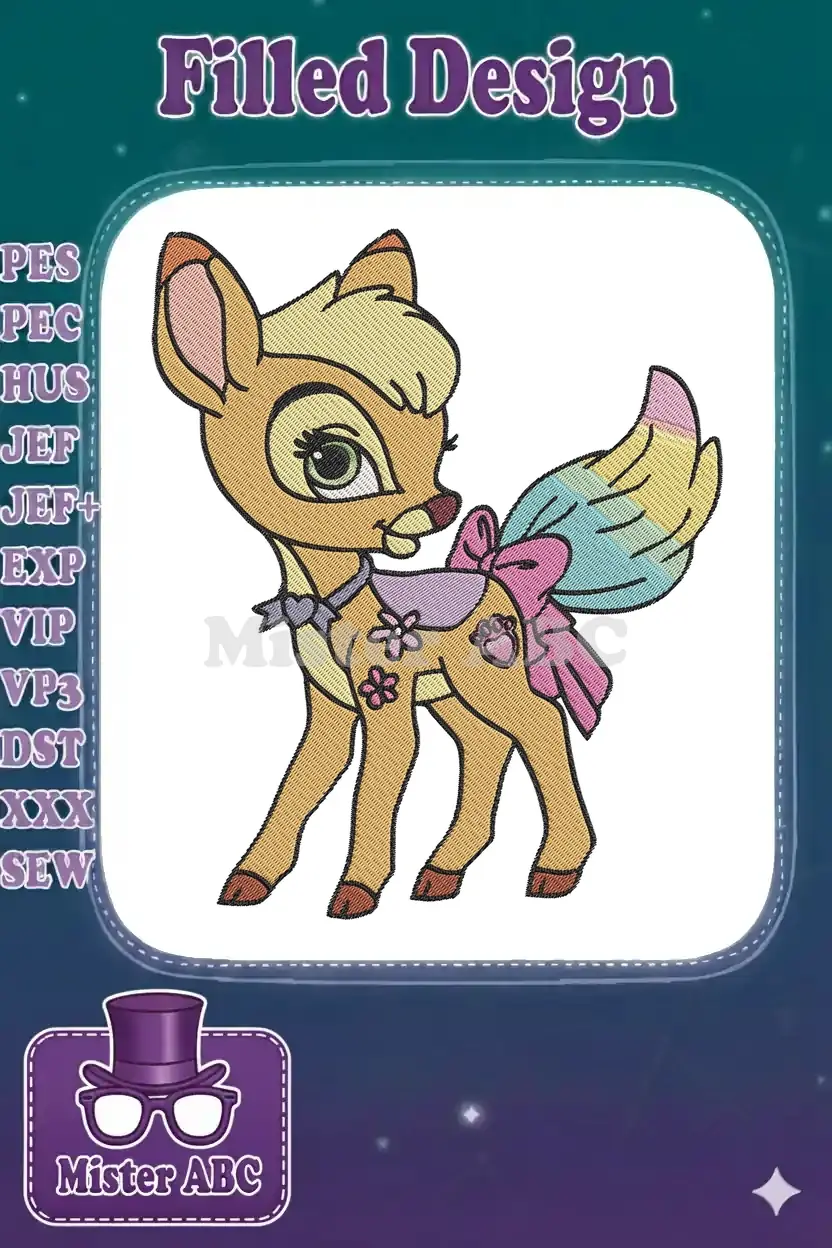 Sweet Deer Fawn with Colorful Rainbow Wings Embroidery Designs