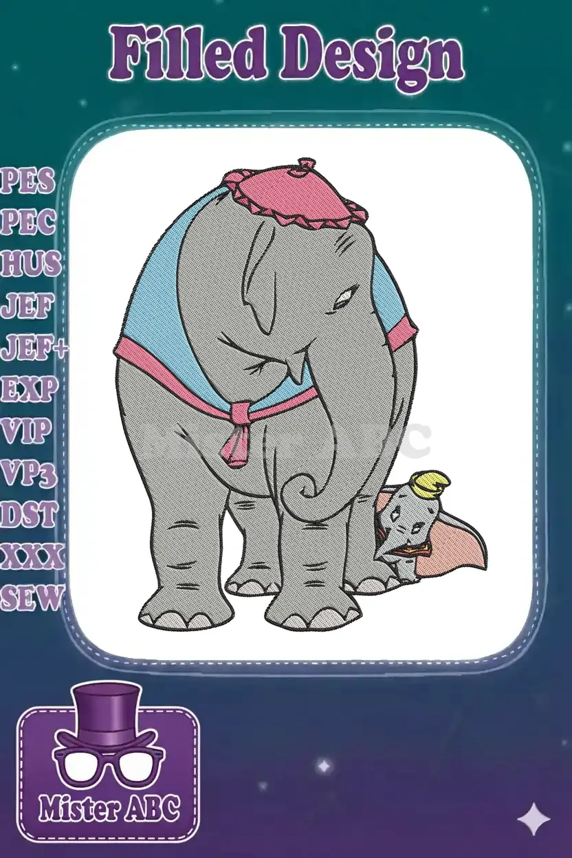 Sweet Dumbo and Mrs Jumbo circus elephant embroidery designs