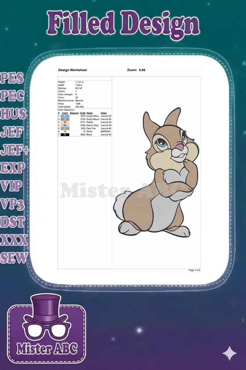 Sweet Thumper bunny with crossed paws embroidery designs