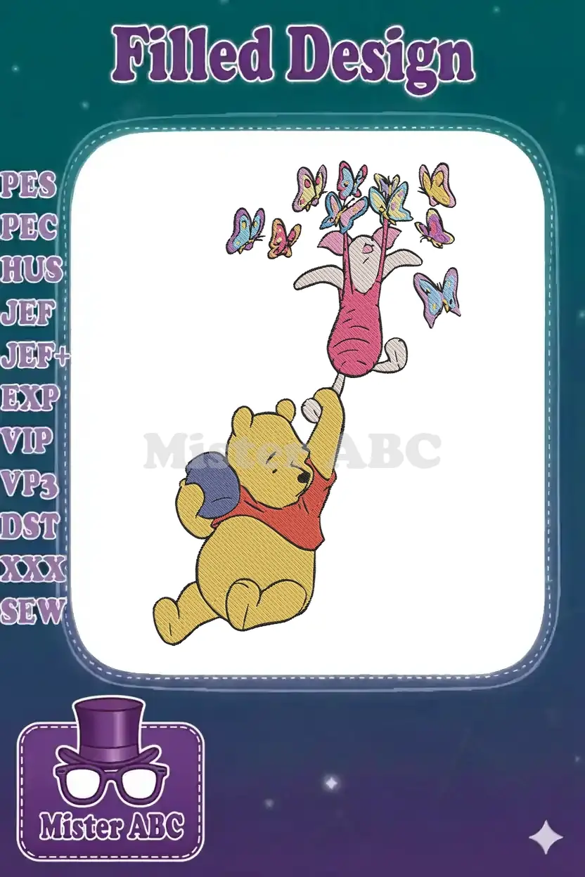 Sweet Winnie Pooh and Piglet Colorful Butterflies Flying Embroidery Designs