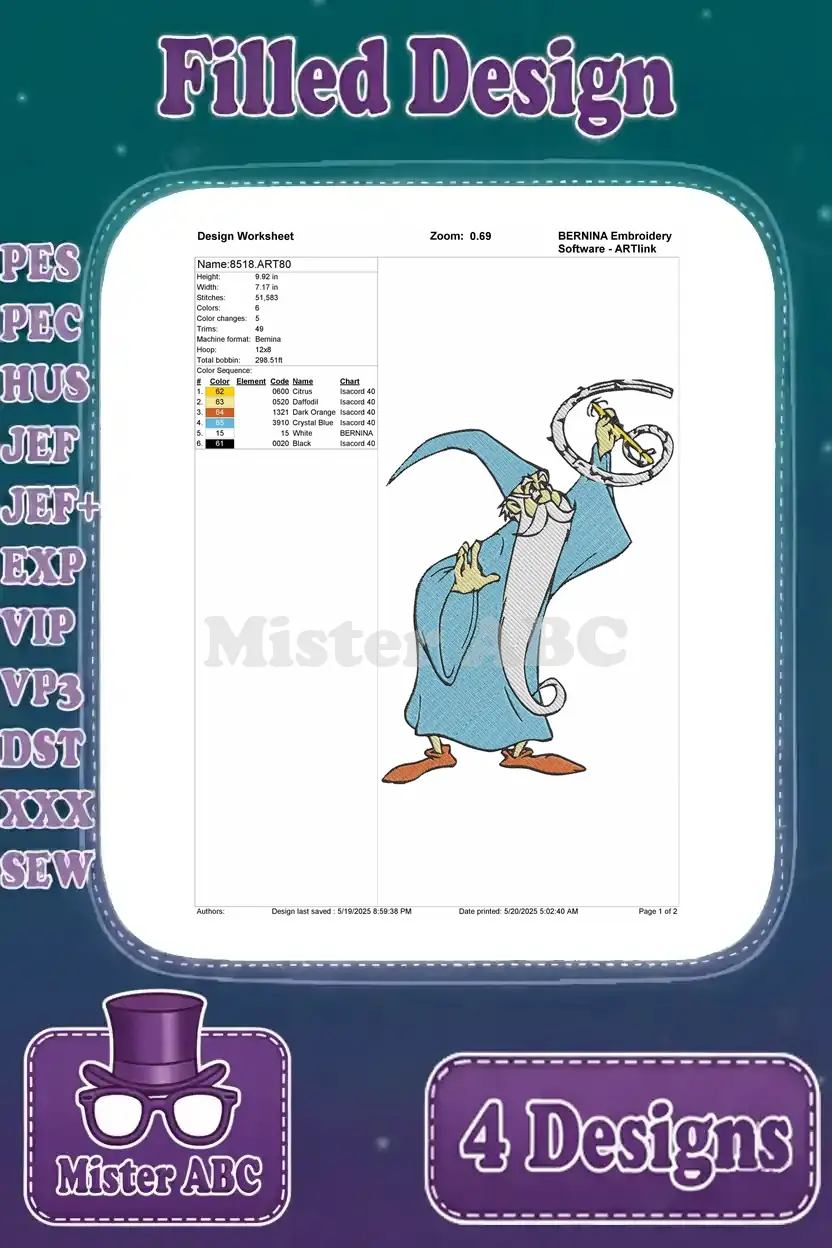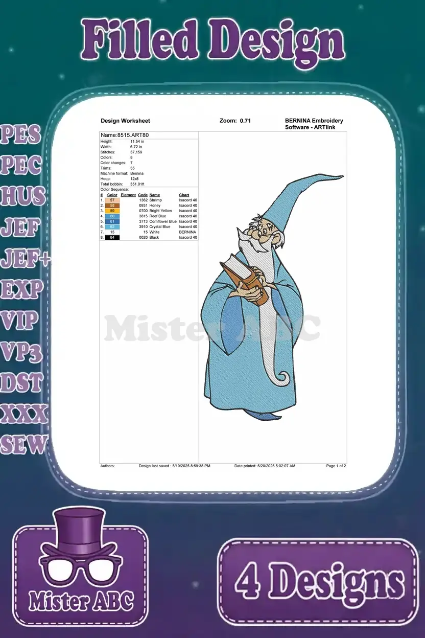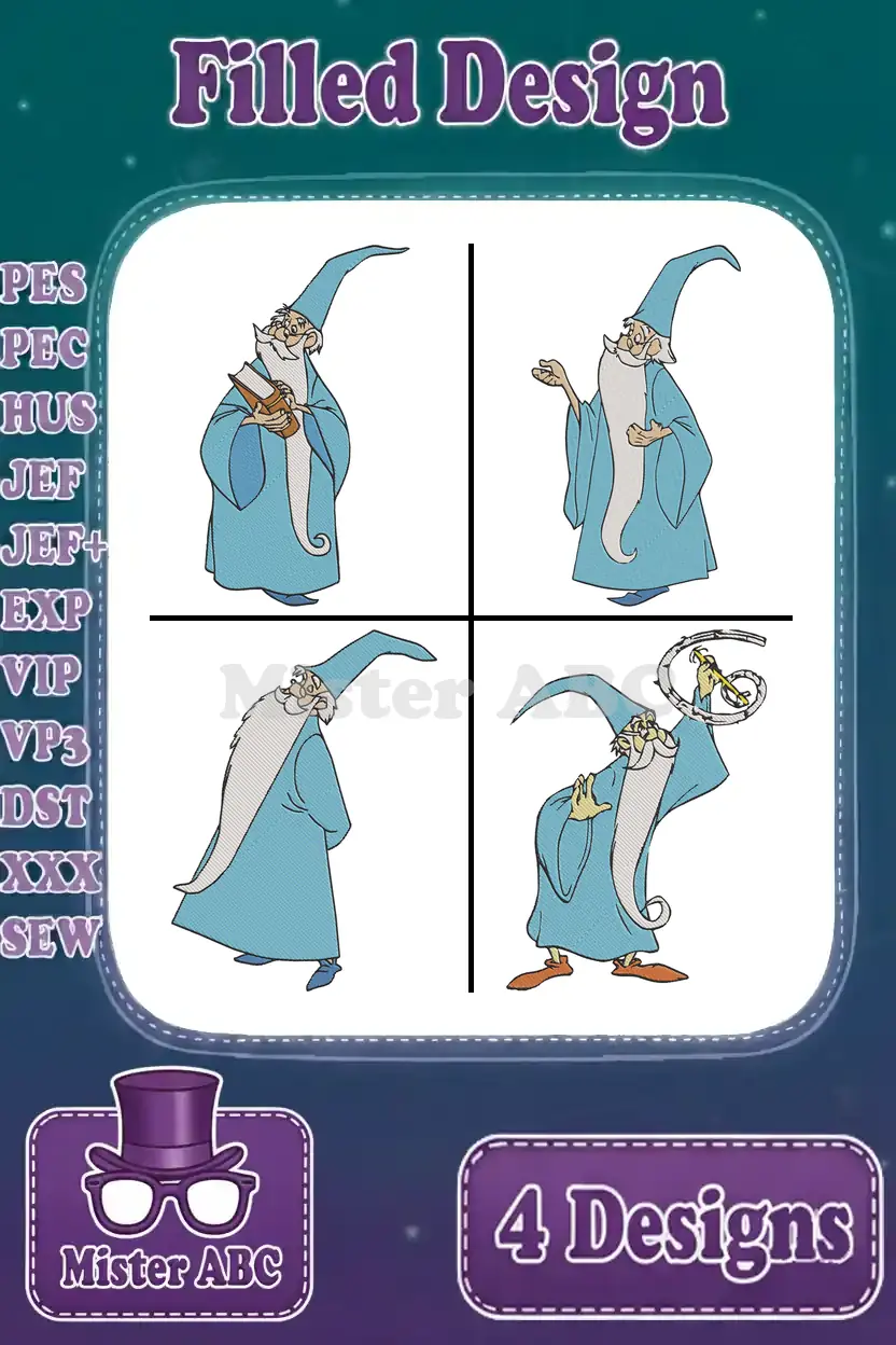 Sword In The Stone Merlin The Wizard Various Classic Magical And Wise Poses – Filled Embroidery Design