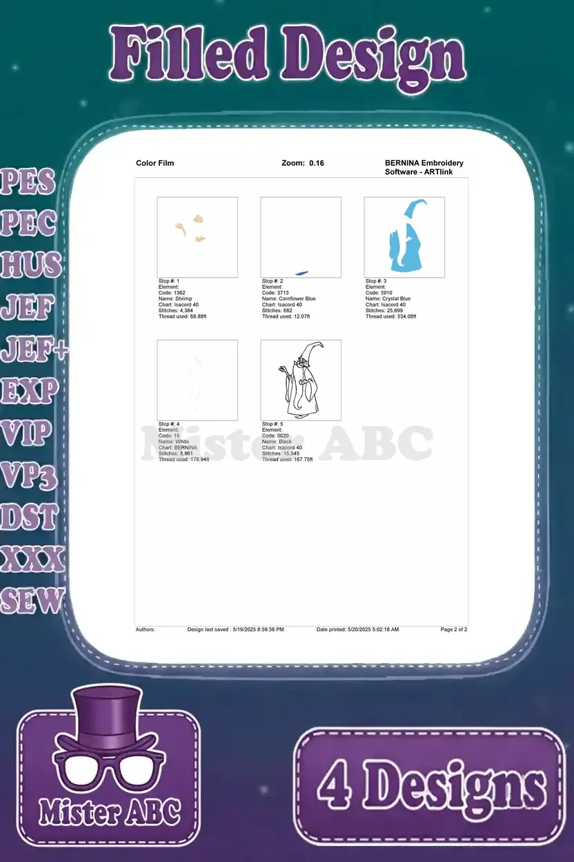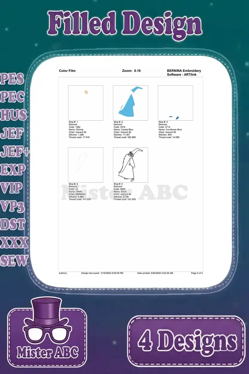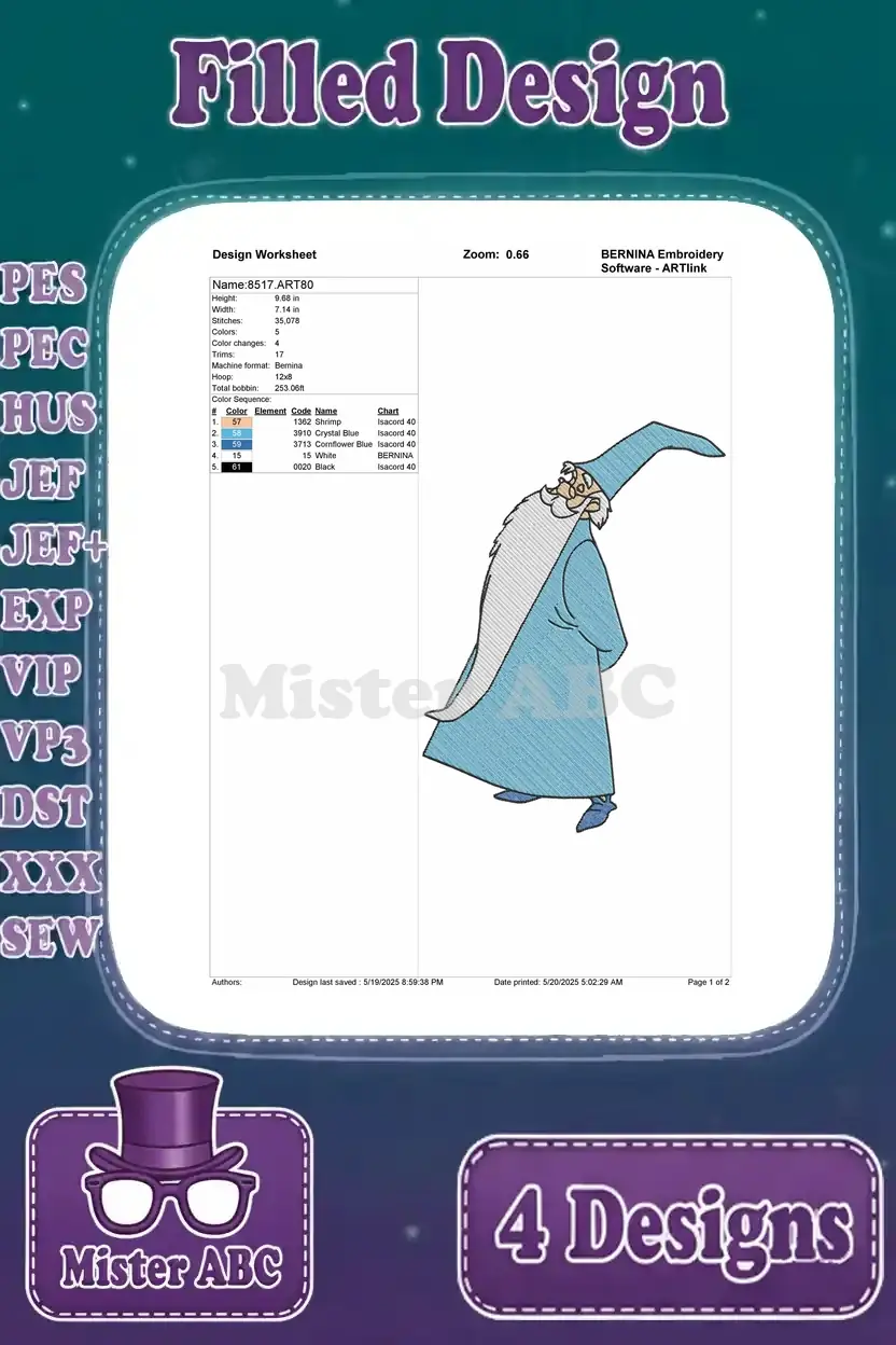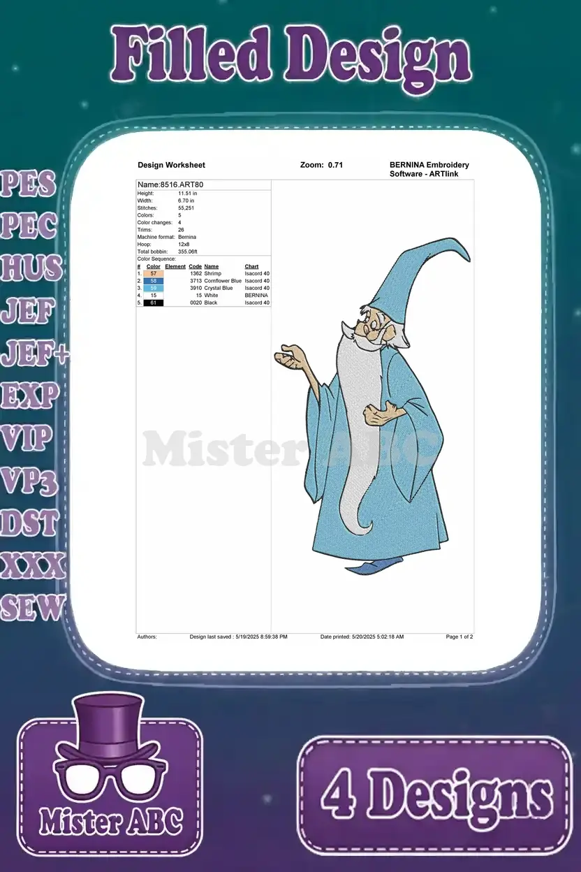 Sword In The Stone Merlin The Wizard Various Classic Magical And Wise Poses – Filled Embroidery Design