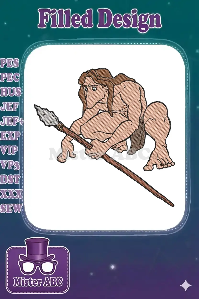 Tarzan-like Jungle Man with Spear Embroidery Designs
