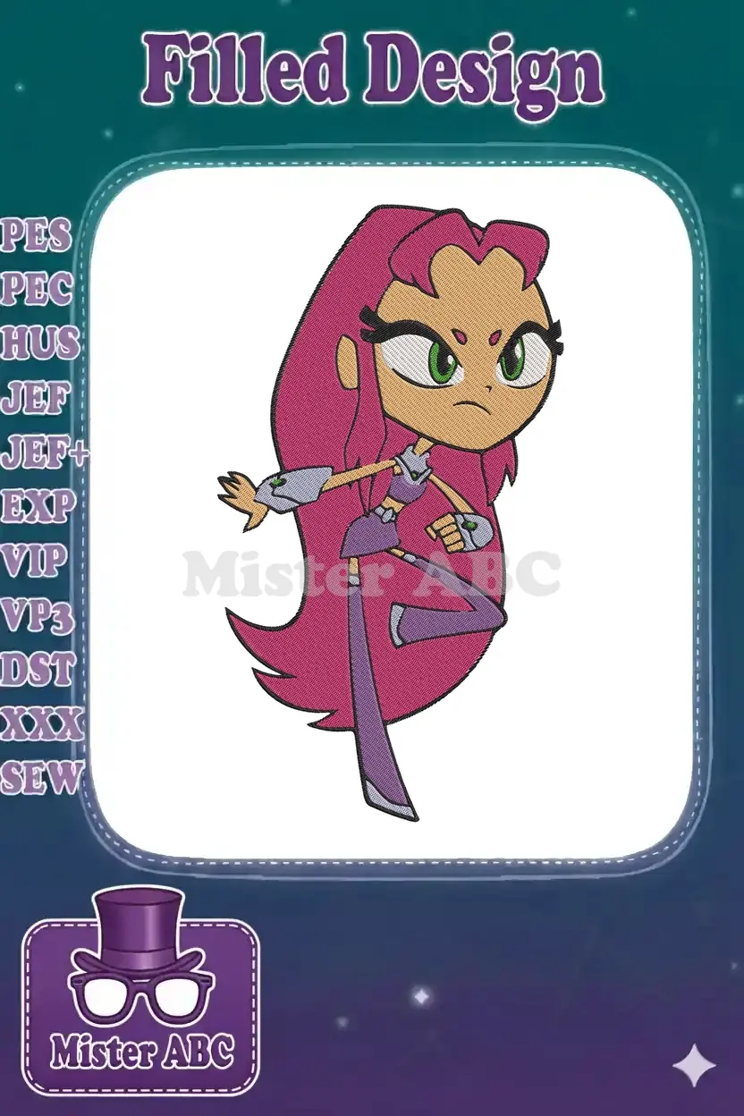 Unleash the power of Tamaran with this vibrant Starfire embroidery design! Perfect for fans of Teen Titans Go.