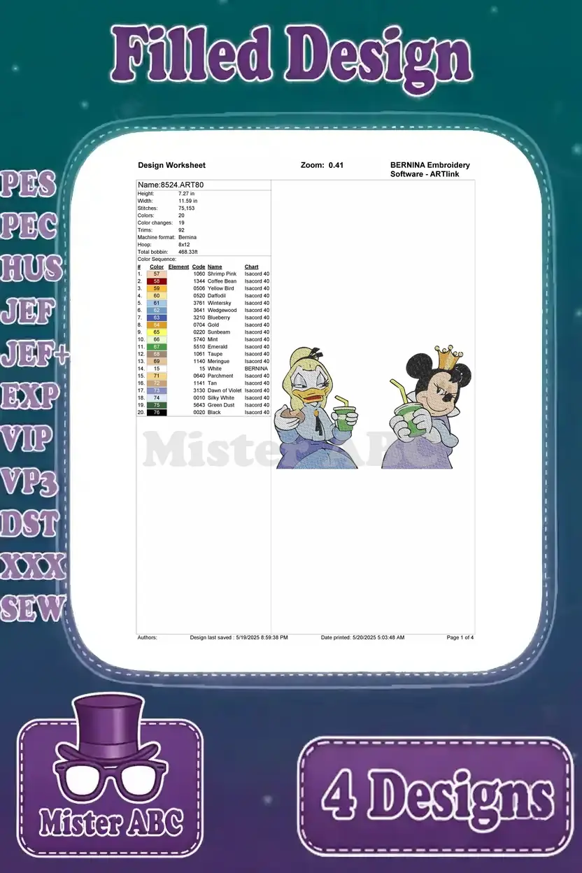 Discover our enchanting Disney character embroidery bundle featuring 4 filled designs. Perfect for adding magic to any project!