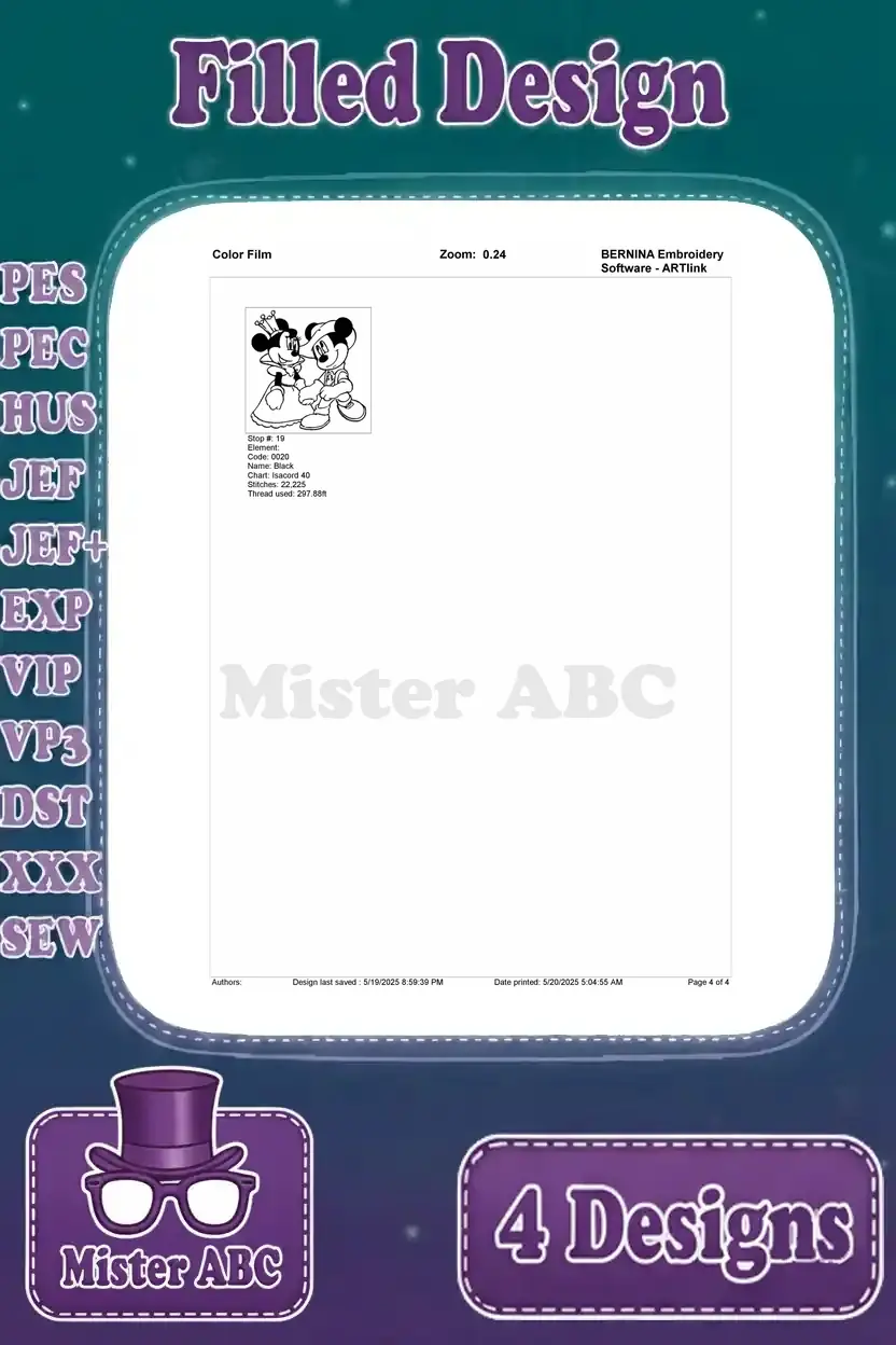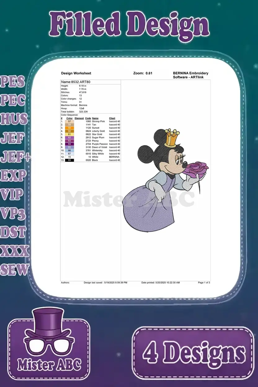 Enchanting Disney-themed embroidery bundle featuring Mickey & Minnie as royalty and a playful cowboy character. Perfect for adding animated magic to any project with vibrant filled designs.