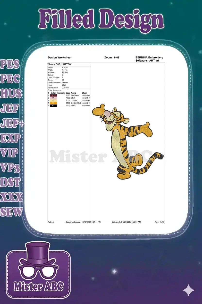 Tigger bouncing happy cartoon character embroidery designs for children