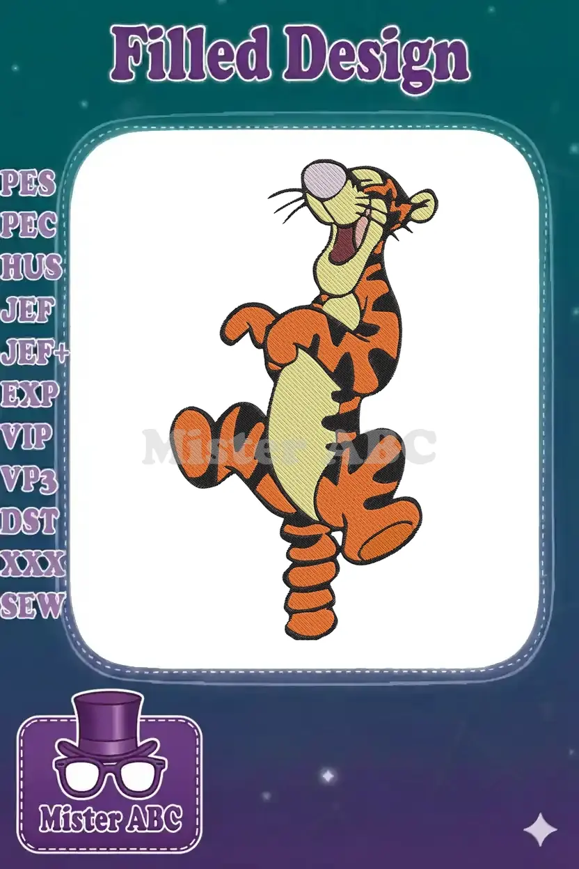 Bring cheerful energy to your projects with this delightful Tigger embroidery design, perfect for fans of Winnie the Pooh.