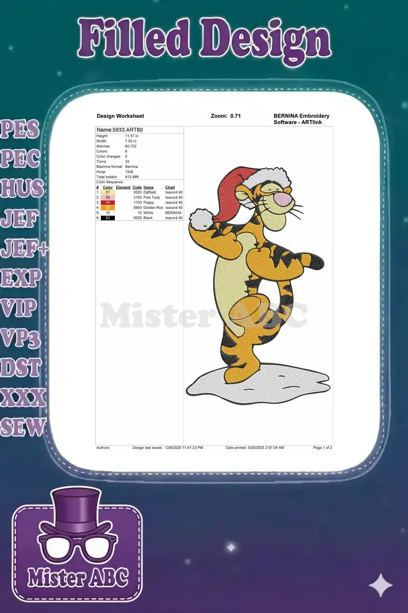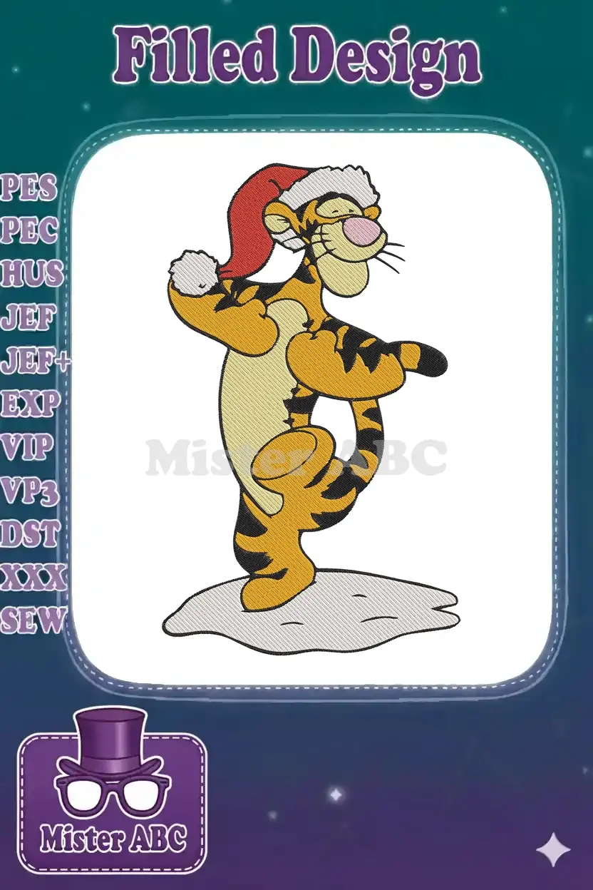 Tigger Christmas Santa Hat Festive Bouncy Embroidery Designs