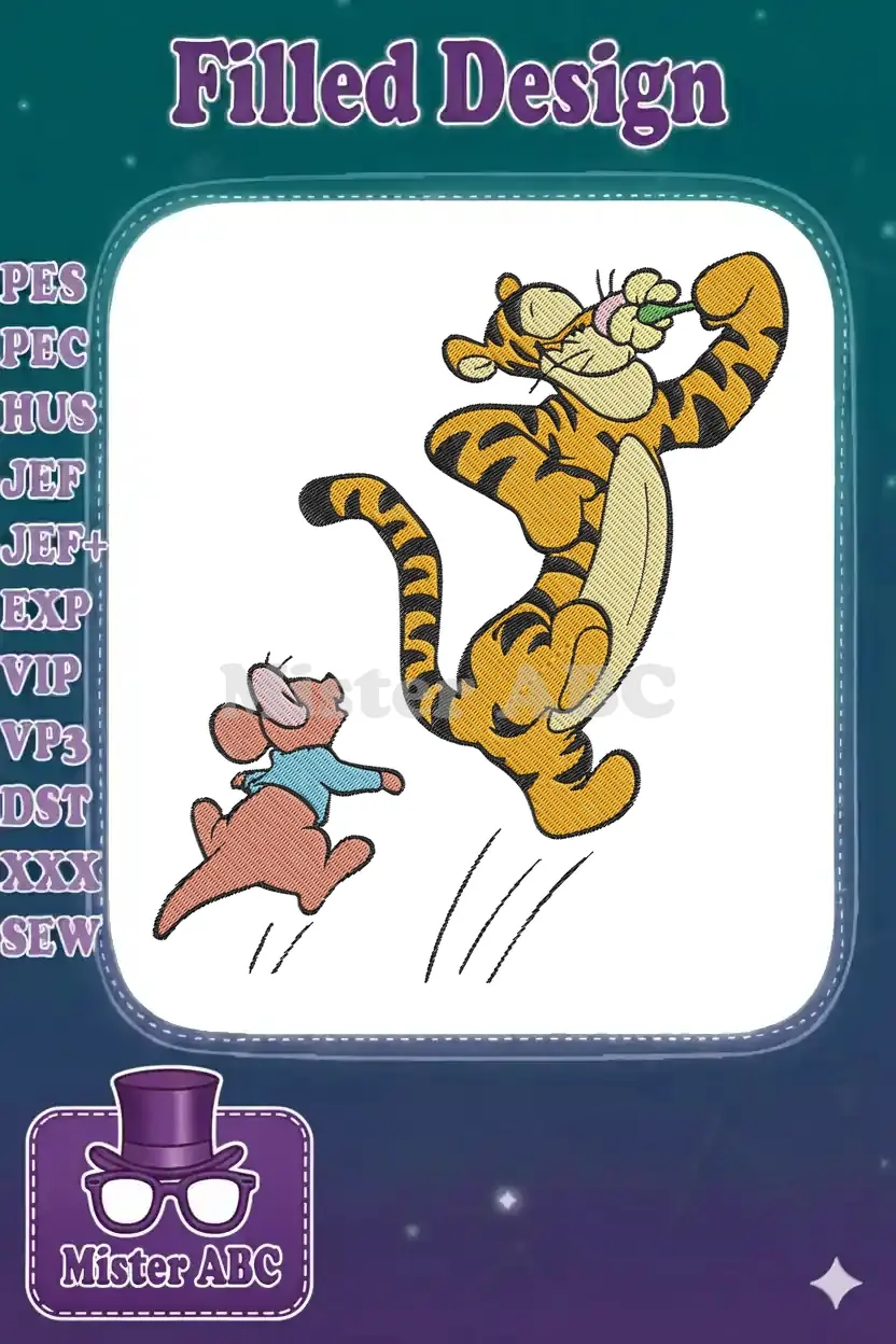 Tigger jumping with flower and running Piglet embroidery designs