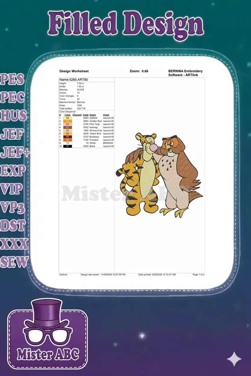 Bring joy to any project with this delightful embroidery featuring Tigger and Owl from Winnie the Pooh, perfect for fans.