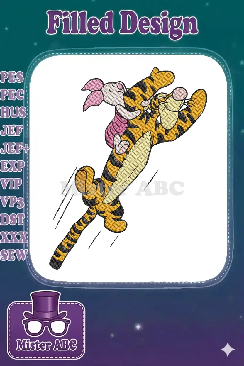 Tigger and Piglet Jumping Playful Friends Embroidery Designs