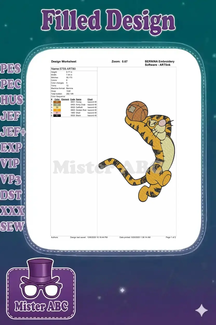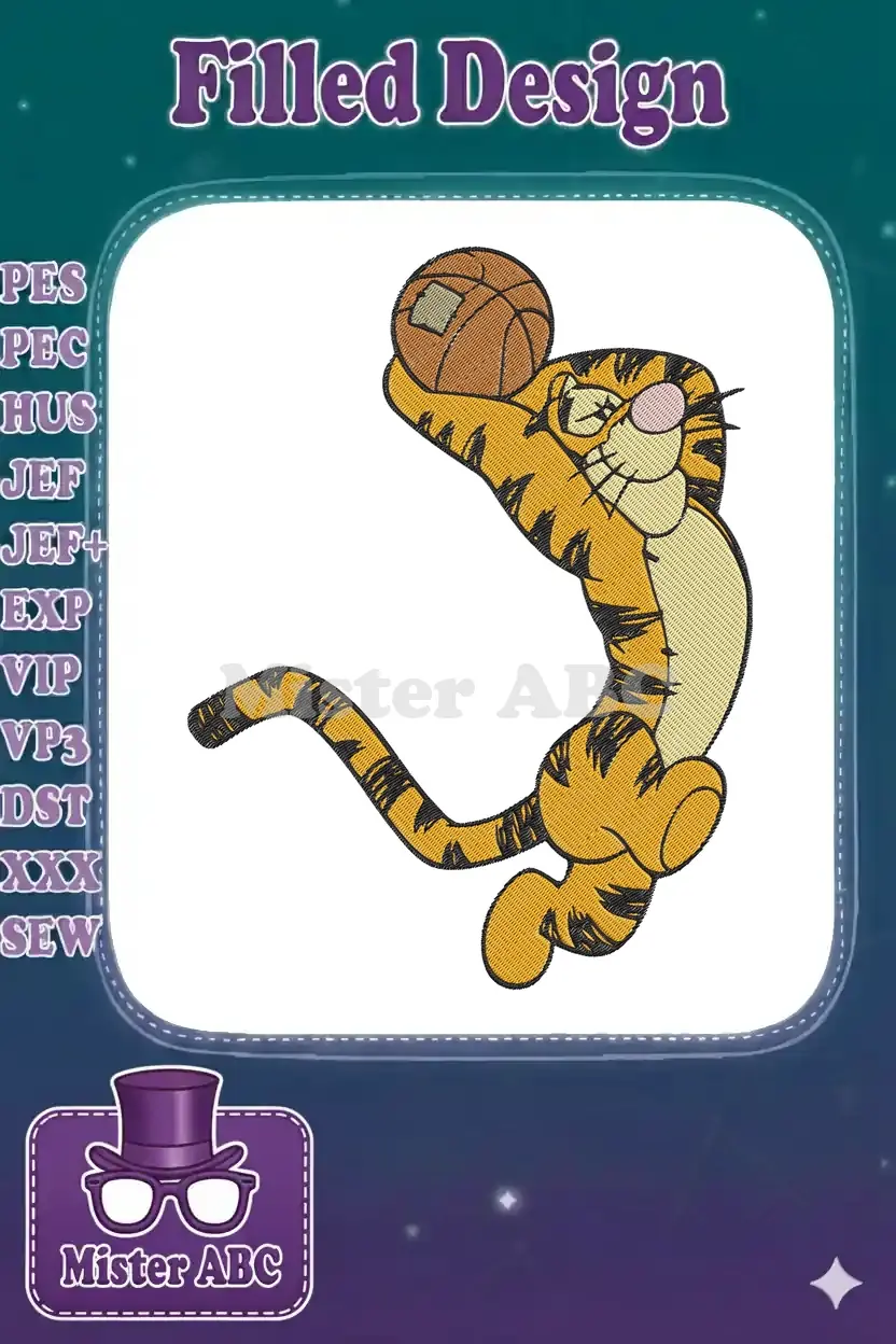 Tigger Playing Basketball Cartoon Character Embroidery Designs