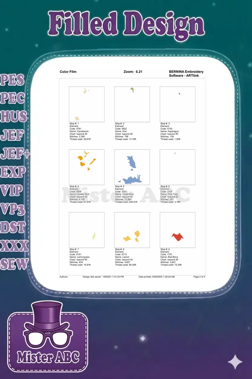 | Stitches | Colors | Thread Changes |