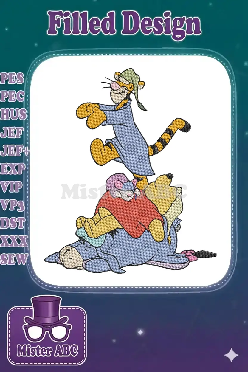 Tigger Pooh Piglet Eeyore sleepy bedtime friends embroidery designs