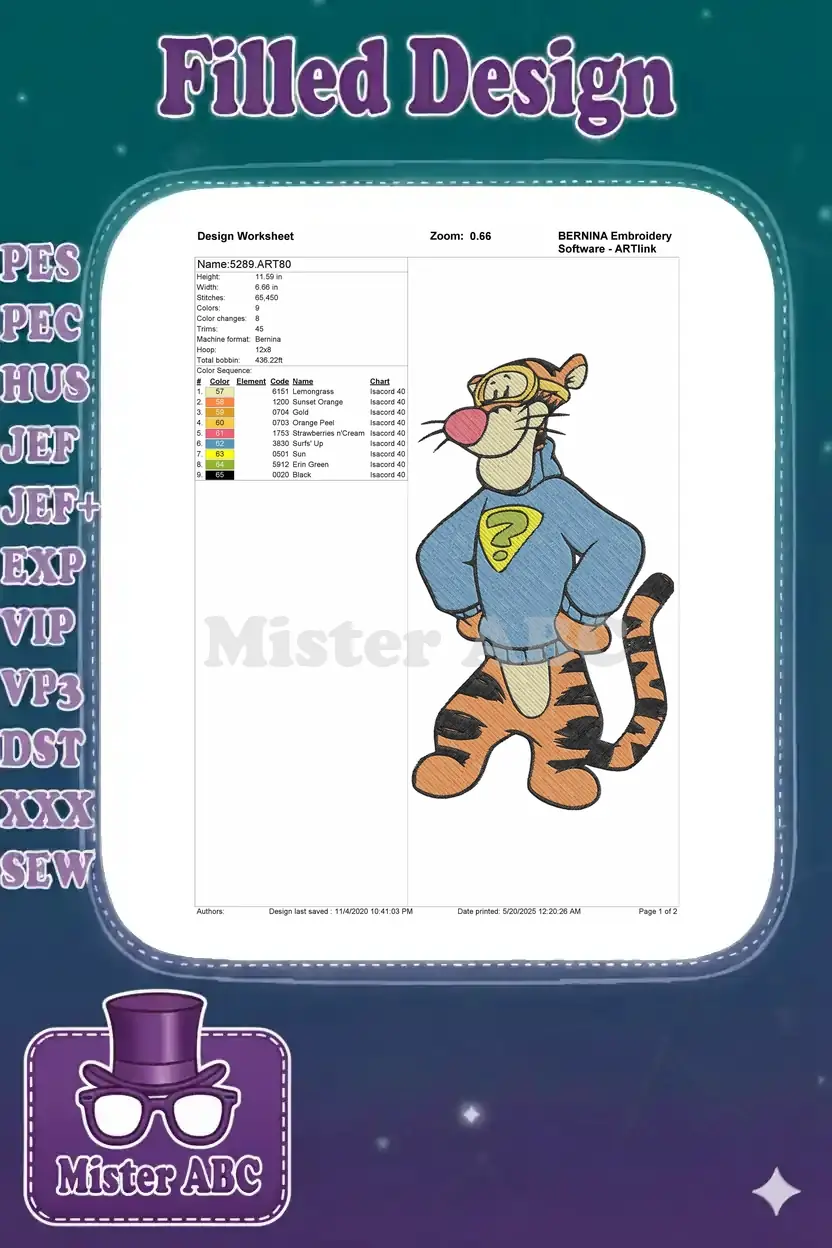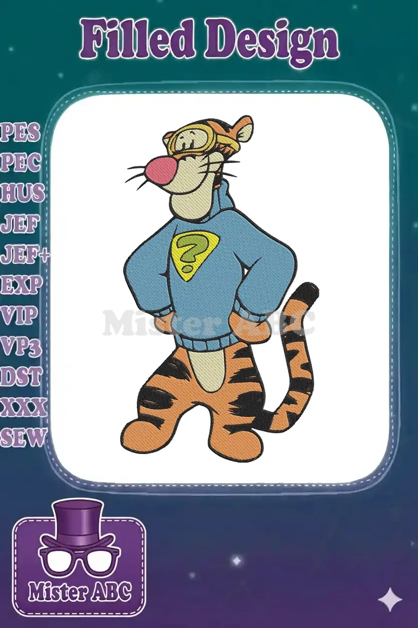 Tigger Superhero Cartoon Embroidery Designs with Blue Hoodie and Goggles