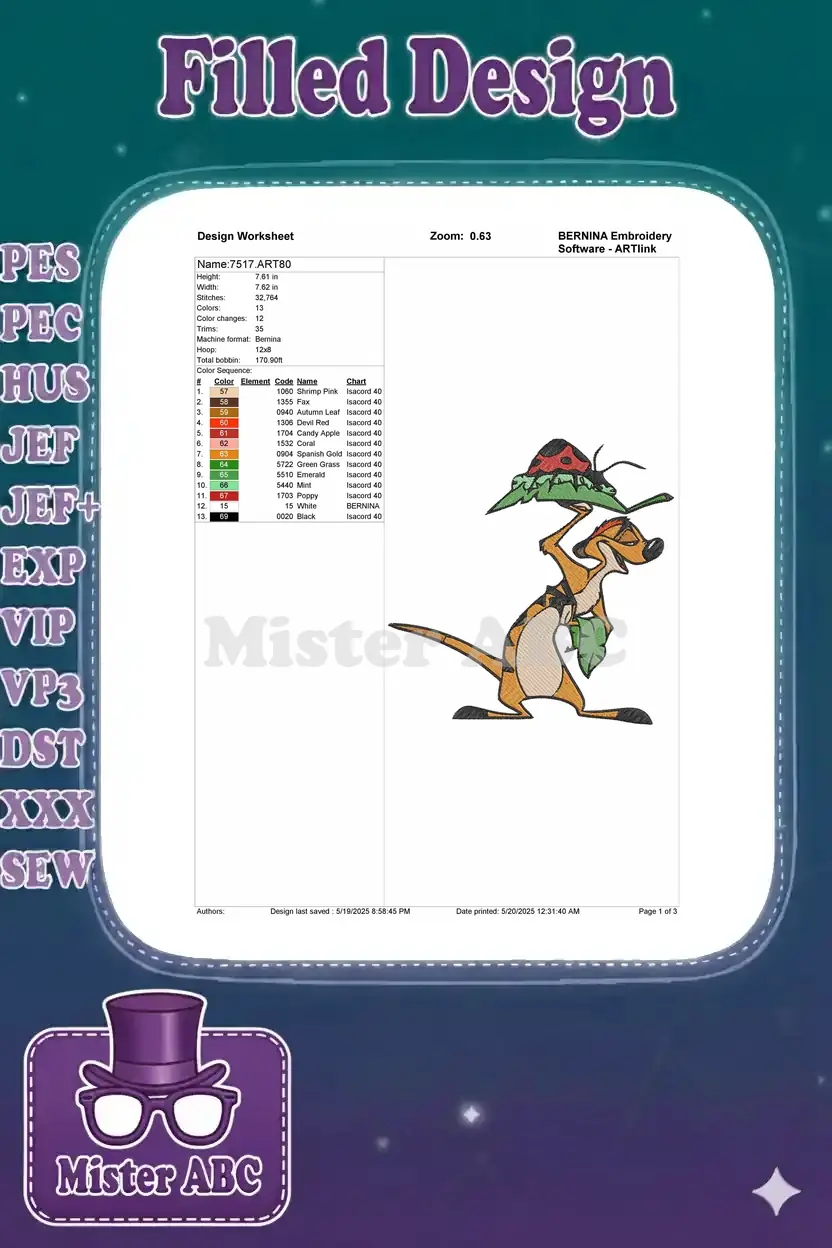 Timon Meerkat Holding Leaf Ladybug The Lion King Embroidery Designs