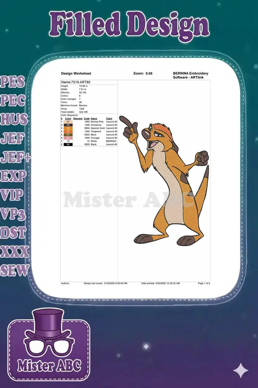 Timon the Meerkat Pointing Disney Embroidery Designs - Instant Download Timon the Meerkat Pointing Disney Embroidery Designs – Instant Download