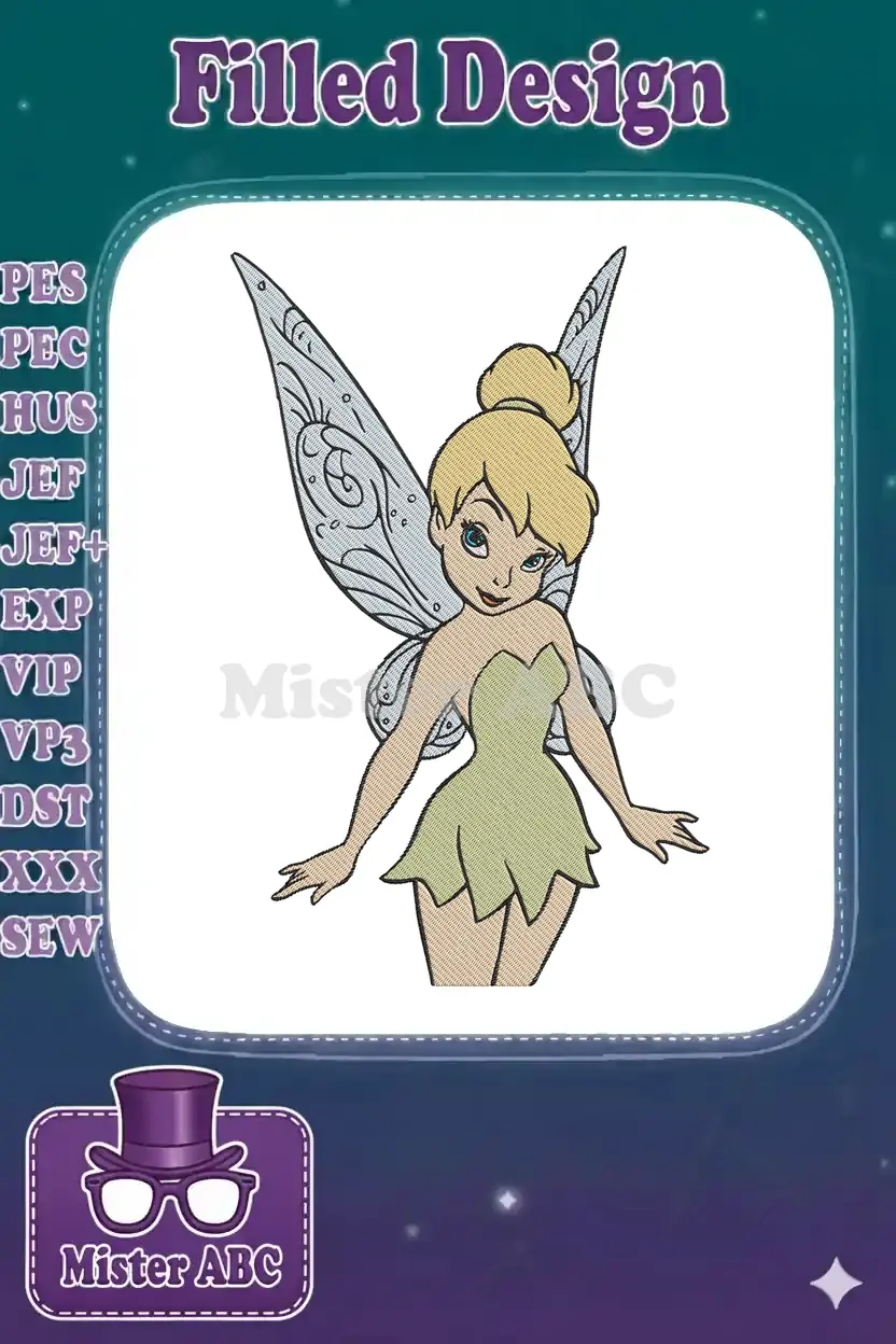 Tinkerbell blonde fairy character with magical wings embroidery designs